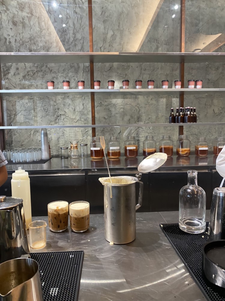 Một khu tổ hợp cafe, triển lãm mang đậm tính nghệ thuật với không gian mở rộng rãi, có nhiều cây xanh, thoáng mát, có cả phòng máy lạnh với sức chứa lớn. 🌆 Không gian: Quán gồm 2 tầng và tầng 1 có thêm khu dành riêng cho triển lãm Ấn tượng đầu tiên chắc chắn là chiếc cầu thang xoắn ốc khá là đồ sộ to lớn nằm giữa trung tâm quán. Đến đây thì đa số đều thấy các bạn check in ở chiếc cầu thang nhiều nhưng mình ấn tượng với quầy bar bên trong quán hơn vì nó khá là rộng và được thiết kế sắp xếp khá là tỉ mỉ chỉnh chu luôn. Xung quanh thì được bao bọc bởi các mặt tường kính lớn để đón nắng nhưng vẫn tạo được cảm giác thông thoáng và kết nối được với không gian ngoài trời. Bàn ghế bố trí khá nhiều nhưng đều được sắp xếp hợp lý. Một nơi cũng khá lý tưởng cho những buổi hẹn hò hay học tập cũng nhưng làm việc tán gẫu nhóm đều được 📋Me.nu: Đa dạng bao gồm đầy đủ các loại cà phê, mocktail, trà, nước ép, cocktail, các loại bánh ngọt,mặn và kể cả các món ăn nhẹ cho mọi người tha hồ lựa chọn. Đặc biệt nước theo mình khá ngon, ấn tượng với ly cheese coffee vừa thơm béo lại ngọt nhẹ và ly matcha latte uống khá là thanh mát luôn. Nhân viên phục vụ lễ phép, dễ thương, nhiệt tình với khách