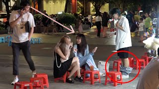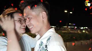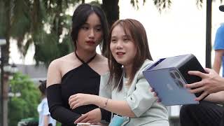 Thử thách gái xinh bắt tiền 50k hôn má của anh chàng mũ xanh